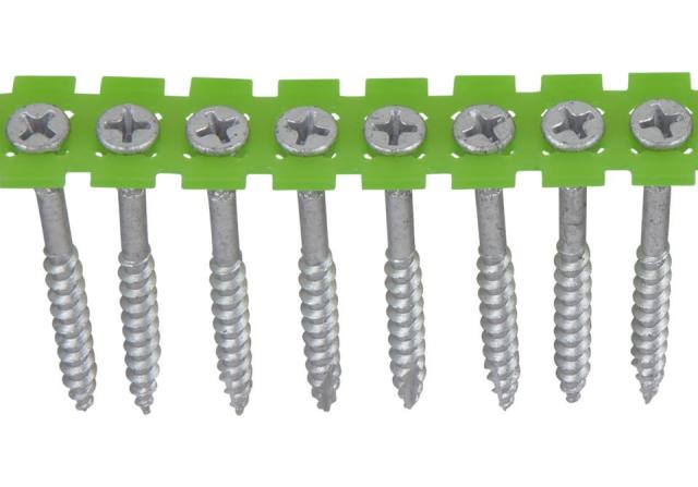ESSVE båndet terrasseskrue CorrSeal C4 er utviklet for montering av terrassebord mot bjelkelag, og gir et solid og varig resultat. Skruen er laget av herdet stål og belagt med CorrSeal-overflatebehandling som gir høy korrosjonsbeskyttelse. Spissen har fiberskjær som reduserer innskruingsmoment og minimerer risikoen for sprekkdannelse, mens riller under hodet gir pen forsenking. Skruen leveres på plastbånd og passer til de fleste skrueautomater som Makita, Milwaukee, Dewalt, Hikoki, Hilti og Festool. Oppfyller CE-kravene i henhold til EN 14592.