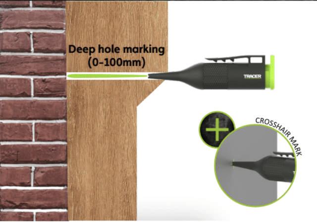 TRACER Trueshot er en dyphulls grønn krittmarker for 0–100 mm dybde med utskiftbar beholder og 3-trinns låsefunksjon for rask og ren merking.