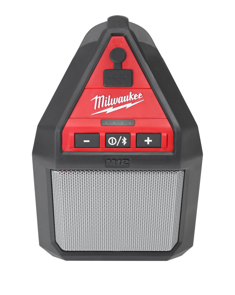 Kompakt M12 Bluetooth høyttaler.Koble til trådløs enhet innefor 10 m.Sterk og klar lyd på alle nivåer.Premium 5W høyttaler med USB 2.1 inngang for tilkobling med ledning.Støt og fuktbeskyttet for bruk i alle miljøer.Kraftig gummiert konstruksjon og høyttalergitter i metall.5V USB lader lader telefoner,tablets og mediespillere.Opp til 24 t driftstid med M12 4,0 Ah batteri.Vekt 0,5 kg.Leveres uten batteri og lader.