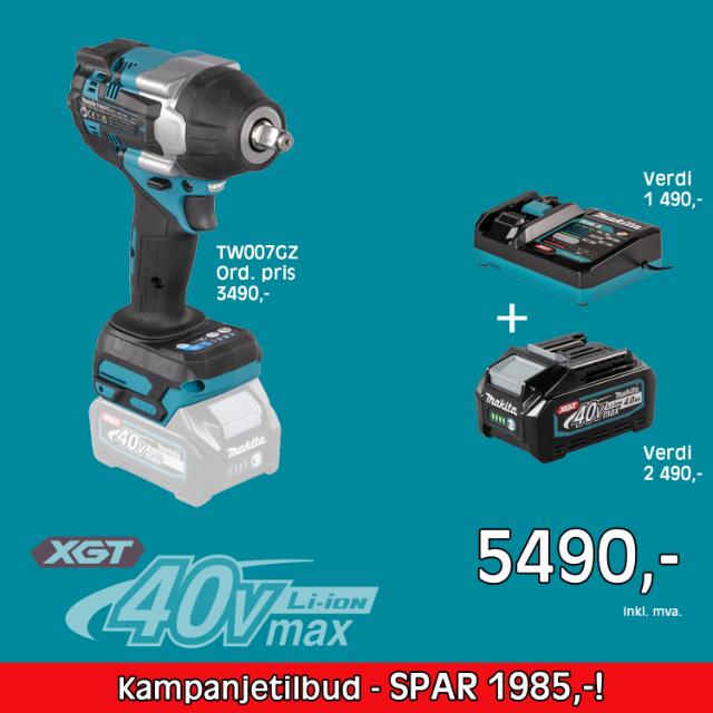 Kraftig og kompakt maskin med 760 Nm moment, løsner bolter med opptil 1.100 Nm, har elektronisk slagkraftjustering, Leveres med 1 stk 4Ah batteri og lader.